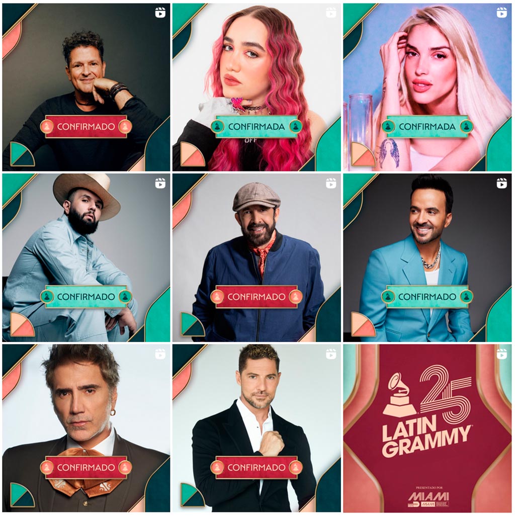 La Academia Latina de la Grabación® anunció el primer grupo de artistas confirmados para la 25.a Entrega Anual del Latin GRAMMY®, que incluye a los actuales nominados David Bisbal, Alejandro Fernández, Luis Fonsi, Juan Luis Guerra, Carín León, Elena Rose y Ela Taubert, así como la Persona del Año 2024, Carlos Vives.