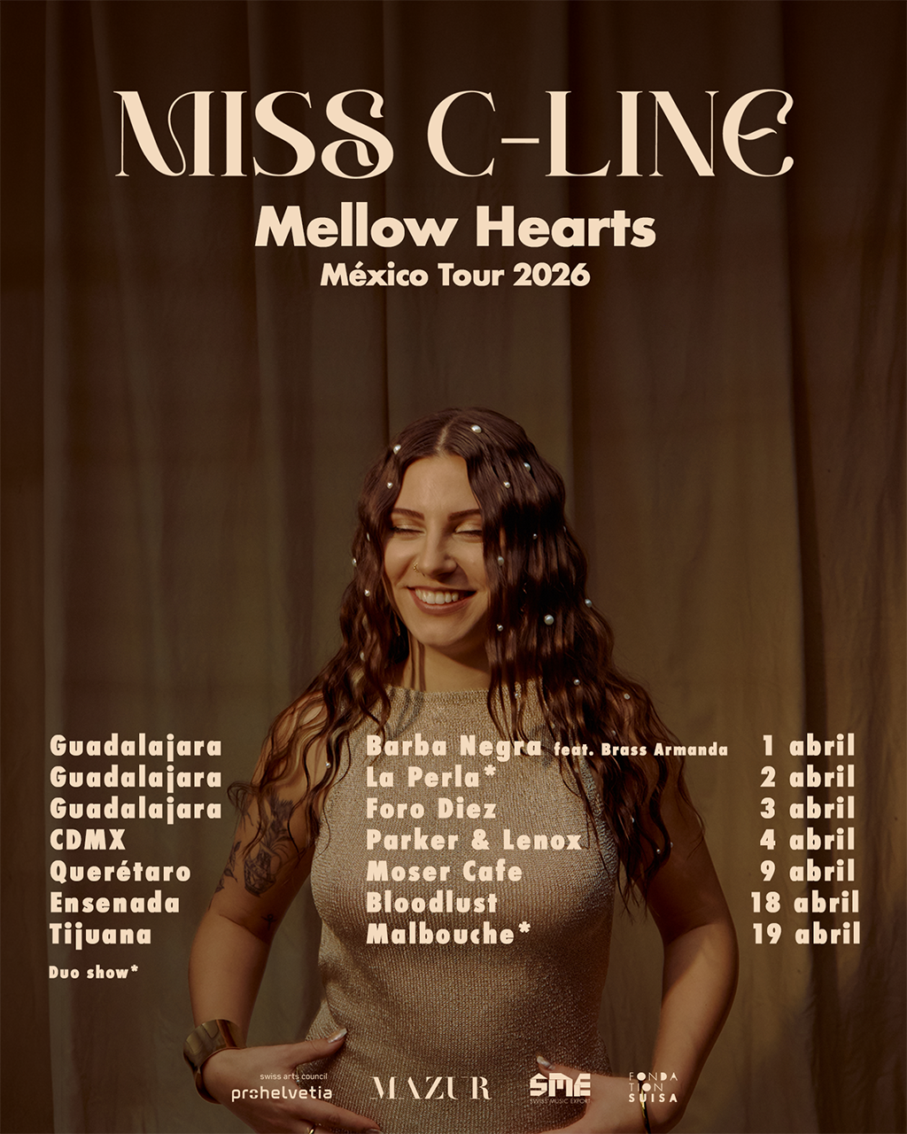La artista suiza de neo-soul alternativo MISS C-LINE llegará a México este abril con una gira especial que recorrerá distintas ciudades del país.
